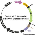 Figure1. OmicsLink™ ORF cDNA expression clones with IRES element in mammalian and lentiviral expression vector systems.